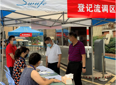 6月16日,欧兵副校长、张邦富副校长在学院结业学生返校工作区域指导工作。